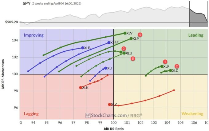 The StockCharts MarketCarpets was a sea of deep red with a few small green islands. All S&P sectors were trading lower on Friday.