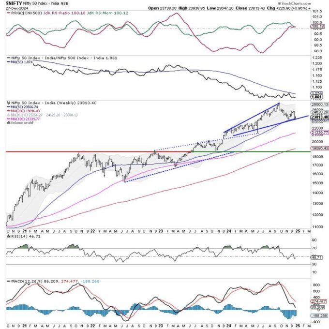 December 28, 2024After suffering a brutal selloff in the week before this one, the Nifty spent the truncated week struggling to stay afloat just below...