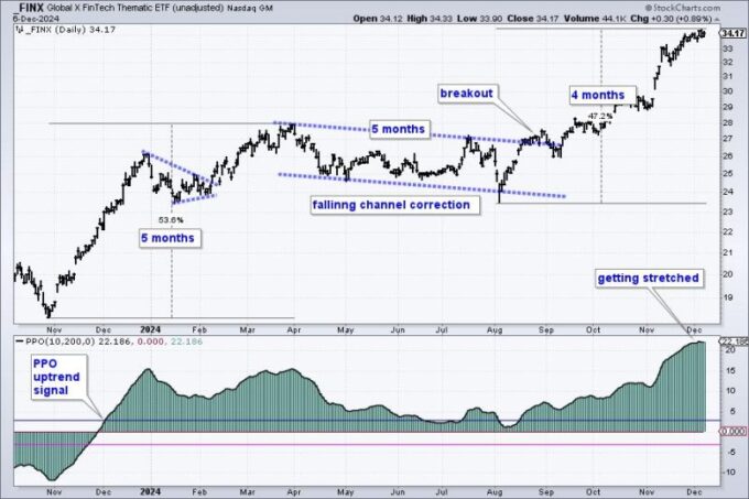 December 7, 2024Chartists looking for stock setups can start with strong industry groups. The Fintech (FINX) is in a strong uptrend and leading, but looking...
